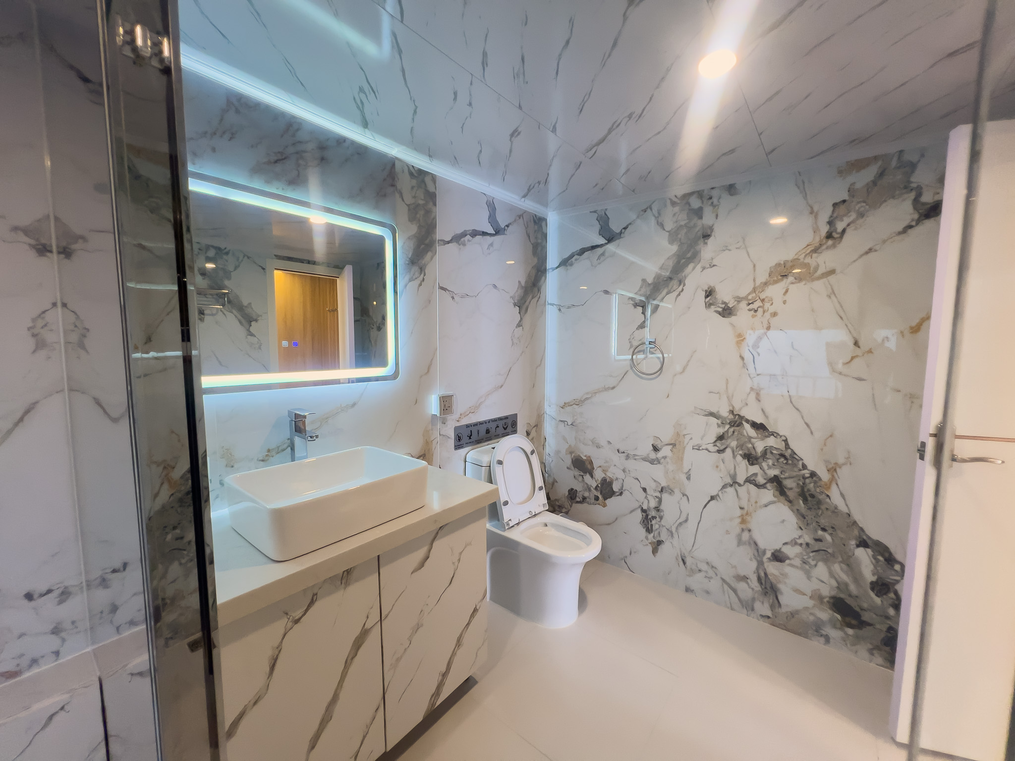 Unlike many dive liveaboards, even the short ride from the main yacht to the dive sites is done in style, with a 19m (62ft) dhoni (diving support vessel). Â Each diver has their own station with space for gear such as lights, SMB, etc.. Â The dhoni also has a toilet with shower, and two additional handheld showers on the back deck.